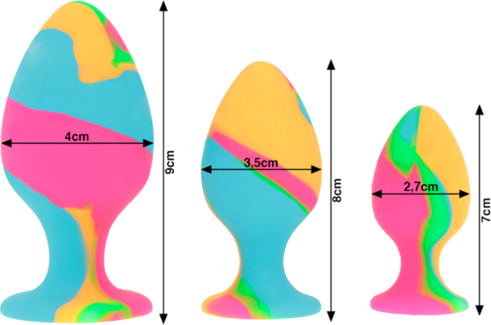 Udobna in vsestranska analna stimulacija s sijočim oblikovanjem tie-dye in mehko silikonsko sondico, ki se prilagaja vašemu telesu. S postepeno obliko v obliki stožca omogoča enostavno in nežno vstavljanje od 2,7 cm do 4 cm premera.