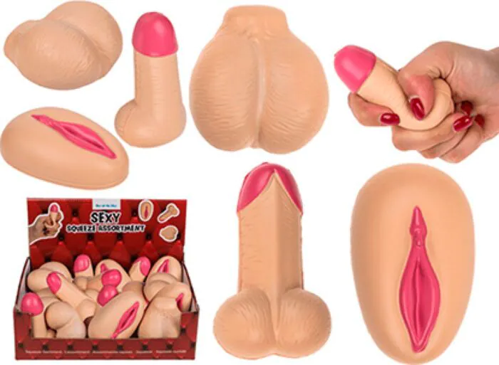 Olajšanje napetosti z dodatkom humorja. Paket Squeeze vsebuje 12 realistično oblikovanih antiestrés figuric, ki so majhne in enostavne za prenašanje. Kot nalašč za zabave, bachelorette večere ali kot smešna darila.