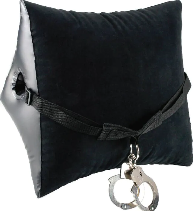 Udobno vezanje in raziskovanje novih možnosti s napihljivim vzglavnikom. Zasnovan za dodatno podporo pri BDSM igrah, zagotavlja stabilnost in udobje, ko preizkušate nove položaje. Lisice iz kovine se enostavno pritrdijo, kar omogoča varno in prijetno izkušnjo.