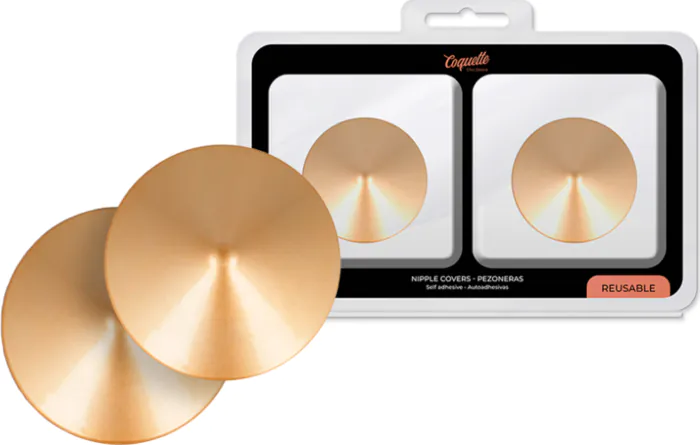 Izjemna audicija za vaš videz in občutek z zlatimi kovinskimi pokrovčki za bradavičke. Lepljiva površina zagotavlja, da ostanejo trdno na mestu, kar izboljša vašo senzualnost. Vdihnili boste drznost, saj ti pokrovčki dodajo unikaten šarm vsakemu videzu.
