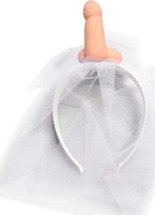 Zabavna diadema DIABLO PICANTE z belim velom in pristojnim okrasjem, poskrbi, da si v središču pozornosti na vsaki nevestini zabavi.