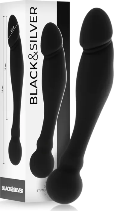 Dildo BLACK&SILVER Karl 18 cm z dvojno gostoto