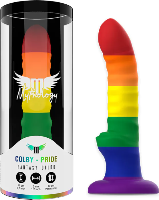 Dildo MYTHOLOGY Colby Pride je udoben in prilagodljiv, idealen za solo ali parne igre. Njegova močna baza za pritrjevanje omogoča različne položaje.