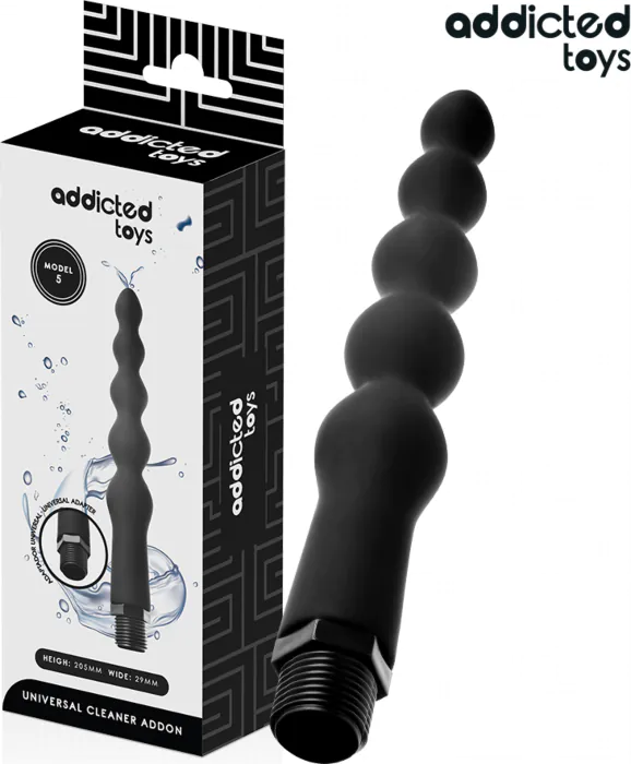 Globinsko in varno čiščenje z analno prho Addicted Toys Model 5. Njegova zasnova iz mehkega silikona in fleksibilnega PVC-ja zagotavlja udobno in učinkovito izkušnjo. Z univerzalnim adapterjem se enostavno namesti v večino prh, kar ga naredi za praktično izbiro za tiste, ki iščejo ustrezno intimno higieno.