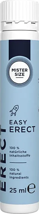 Povečana vzdržljivost in energija v samo 30-60 minutah! Easy Erect formula MISTER SIZE je narejena iz 100% naravnih sestavin in je popolnoma brez sildenafil. Užitno z alkoholom, kar pomeni, da se lahko sprostiš brez skrbi.