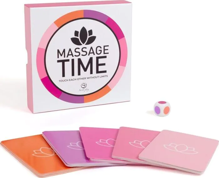 Igra Massage Time je zasnovana za pare, ki želijo odkriti nove načine intimnosti. Z 50 kartami in barvnim kocko prinaša zabavno in sproščujočo izkušnjo.