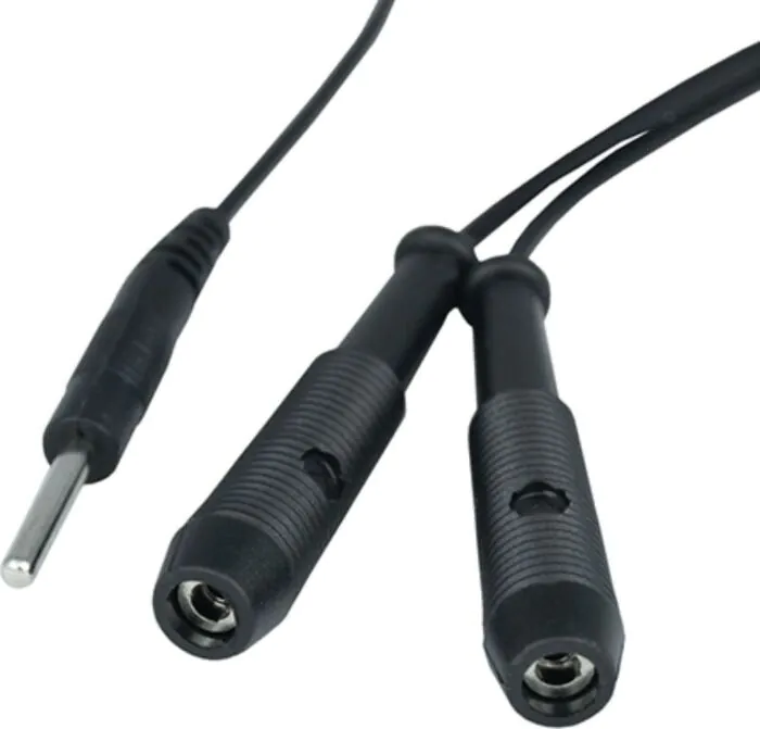 Povežite kabel z vašim dvokanalnim stimulatorem in izberite želene dodatke. Kabel je združljiv z vsemi stimulatorskimi napravami ElectraStim, kar vam omogoča, da uživate v neskončnih kombinacijah. Priporočamo uporabo lubrikanta na vodni osnovi, da izboljšate izkušnjo.