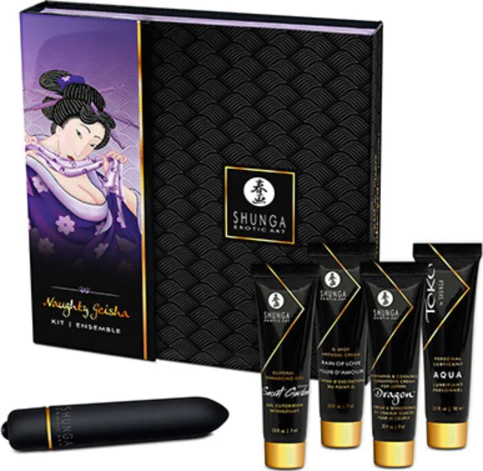 Kvas za pare, ki iščejo raznolikost in nove občutke v postelji. Kits Geisha Naughty vsebuje lubrikant Toko na vodni osnovi, gel za klitoris in vibracijsko kroglico z 10 različnimi načini delovanja. Vse to je zasnovano za zagotavljanje intenzivnih in nepozabnih trenutkov.