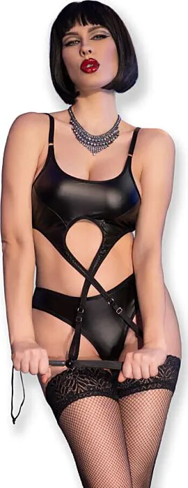 Komplet, ki združuje eleganco in funkcionalnost, ti omogoča, da izgledaš spektakularno, ne da bi žrtvoval udobje. Izdelan iz elastičnega in mehkega materiala, ta set vključuje top z nastavljivimi naramnicami, odprt tanga in nogavice, ki poudarijo tvojo postavo. Poleg tega prihaja z visokokakovostnim silikonskim bičem, ki doda igriv pridih tvojim posebnim trenutkom.