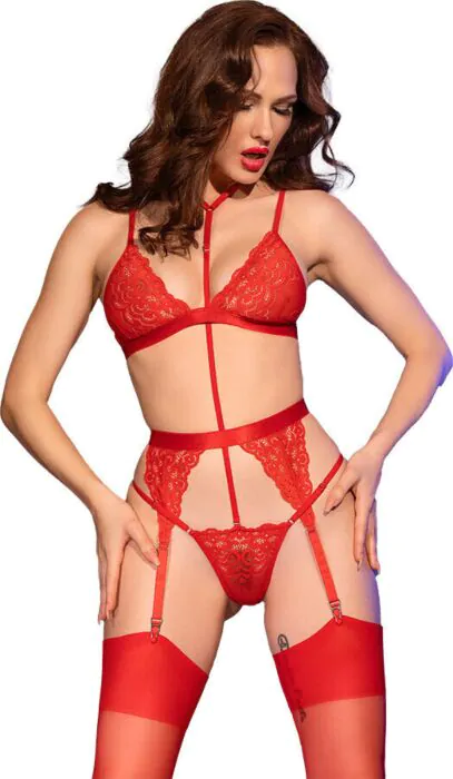 Komplet za nogavice vključuje nastavljiv modrček, povezovalec, tangice in kabaretne nogavice, kar vam omogoča, da se počutite zapeljivo in udobno.