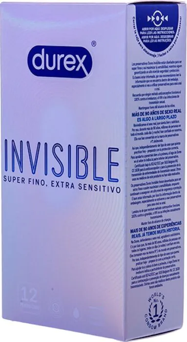 Maksimalna občutljivost z ultra tankimi kondomi Durex Invisible, ki so izdelani iz naravne latex gume. Njihova oblika zagotavlja udobje in užitek med uporabo, vsak kondom je dodatno obogaten z lubrikantom na osnovi silicija za še večjo gladkost.