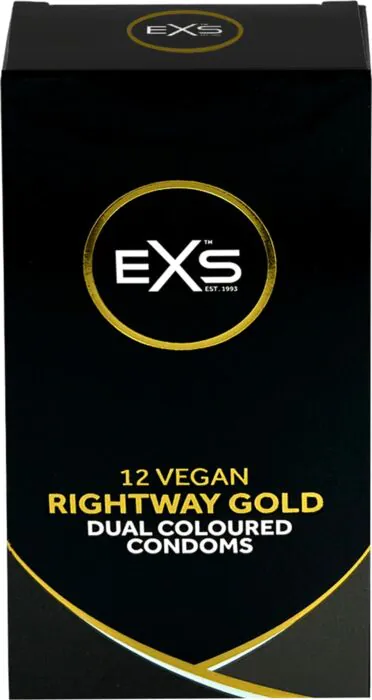 Los Exs Rightway Gold 12's so kondomi iz naravne lateksa, namenjeni tistim, ki iščejo kondom za vsakodnevno uporabo z enostavno namestitvijo. Vidna zlata konica in mat bela notranjost pomagata pri prepoznavanju usmeritve in pospešita postopek namestitve; vgrajen rezervoar ščiti prostor, rezerviran za ejakulacijo, in silikonasto mazivo ponuja dolgotrajnejše drsenje kot mnoge vodne maziva.