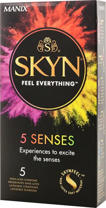 Občutite tesnobo kože ob koži zahvaljujoč materialu sensopreno, ki je brez lateksa. S paketom petih kondomov Manix 5 Senses lahko uživate v čutnih izkušnjah, med katerimi so osvežujoči Skyn Cool, segrevalni Skyn Hot in sladki okus Skyn Cocktail Club. Vsaka izkušnja prinaša drugačno senzacijo in zagotovo bo popestrila vaše odnose.