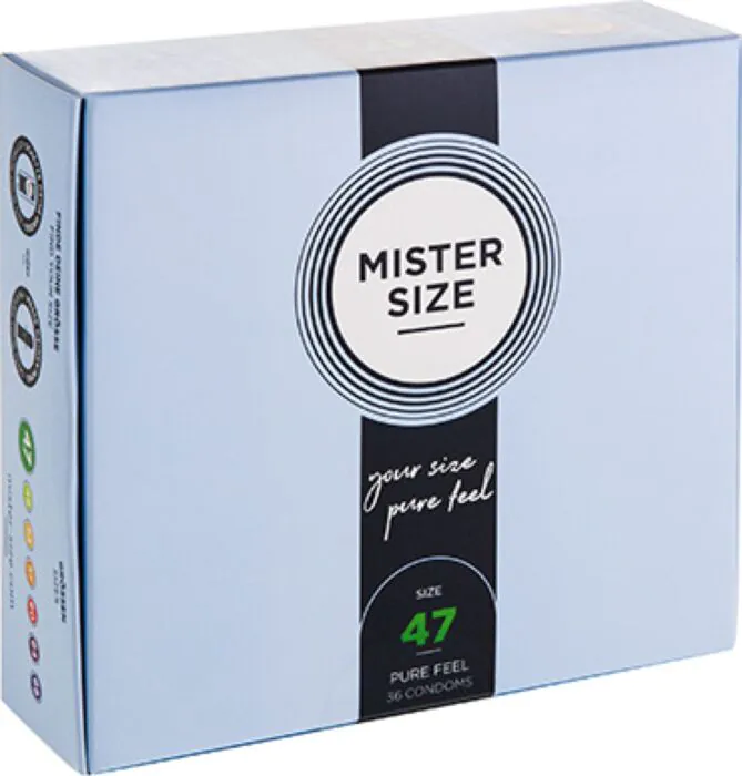 Kondomi MISTER SIZE 47 mm so zasnovani za optimalno prileganje in močne občutke. Idealni so za tiste, ki iščejo udobje v manjšem formatu.