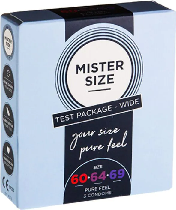 Uživajte v naravnem občutku in udobju s kondomi Mister Size, ki so na voljo v treh različnih velikostih: 60, 64 in 69 mm. Vsak kondom je izdelan iz naravnega lateksa in ima debelino 0,06 mm, kar omogoča večjo senzitivnost in varnost pri uporabi.