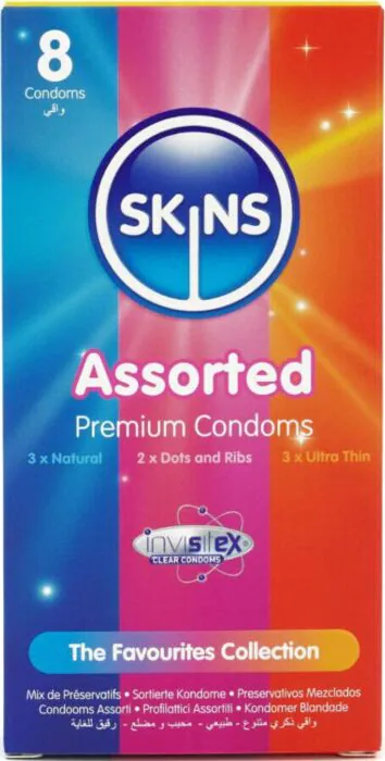 Kondomi Skins Surtidos - Naravni, Dots & Ribs, Ultrafini