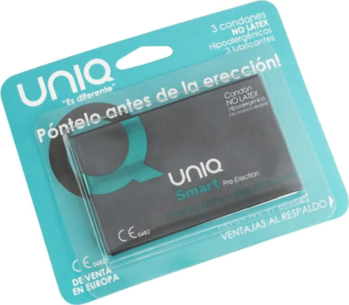 Občutljivost ob preboju z UNIQ SMART brez lateksa, ki se enostavno namesti pred erekcijo in ostane skoraj neopazen. Njihova ultra tanka zasnova zagotavlja boljši stik, medtem ko hipoalergenski material omogoča varno uporabo. V paketu so trije kondomi in trije paketi lubrikanta za dodatno udobje.