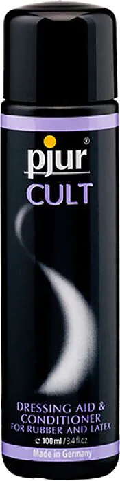 Pjur Cult is specifically formulated for vinyl and latex clothing, making it ideal for those materials. It's not recommended for use with natural fabrics.