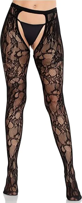 Experience sensual sophistication with these rose lace stockings that feature an open back design. Crafted from a delicate floral lace blend of 94% nylon and 6% elastane, they hug your legs for a flattering fit while adding a daring touch to your hosiery collection.