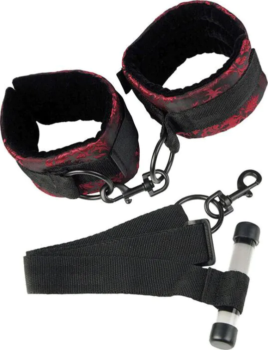 Uživanje v udobni in varni vezavi postane preprosto z lisicami CalExotics Scandal. Izdelane iz robustnega poliester, te lisice ne le, da hitro namestite na vrata, temveč tudi omogočajo udobno dolgotrajno uporabo zahvaljujoč mehkemu in obloženemu notranjosti.