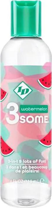 Lubrikant ID 3SOME nudi okus lubenice za sveže občutke in mehak dotik, primeren za oralno uživanje in masaže. Nepogrešljiv za intimne trenutke.