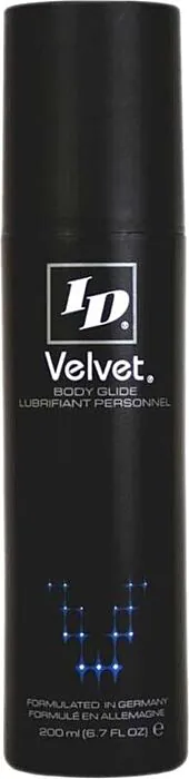 Dolgotrajno uživanje brez drgnjenja s lubrikantom ID Velvet na osnovi silikona. Njegova premium formula ne le da zmanjšuje drgnjenje, temveč tudi deluje kot kondicioner in vlažilec za kožo, kar povečuje udobje in užitek pri vsakem nanosu.