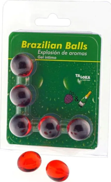 Uživite v užitku z 5 brazilskimi žogicami Taloka, ki ob stiku s telesno toploto sprostijo lubrikant za intenzivnejše občutke. Njihova aromatična kombinacija jagod in šampanjca prinaša dodatno senzualnost med intimnimi trenutki, tako analno kot vaginalno.
