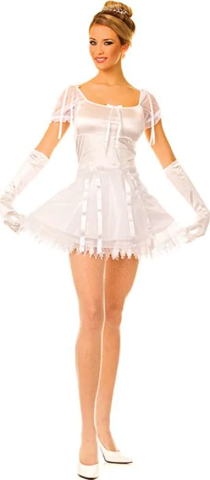 This Music Legs ballerina costume is a simple, flattering outfit for role-play, parties or photo shoots. Made in shiny satin with tulle trims and lace edging, it comes with matching satin gloves and an adjustable ribbon finish to help the fit. Choose this if you want an elegant costume piece that’s easy to wear and style for small-to-medium frames.