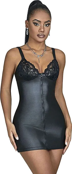 Odkrijte obleko Sublime, ki poudari vaše obline s kombinacijo učinka usnja in čipkastih detajlov. Primerna za posebne priložnosti in zapeljevanje.