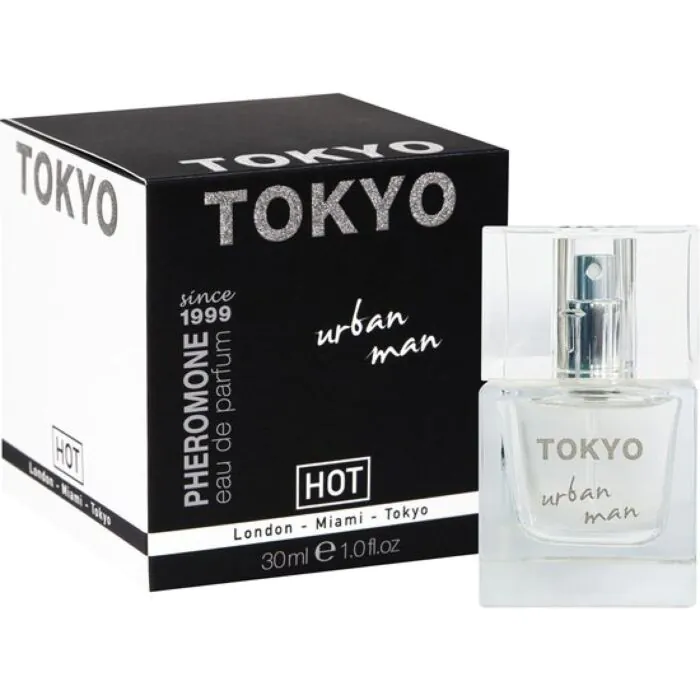 Magnetna privlačnost v vsaki kapljici. Parfum s feromoni HOT Tokyo Urban ne le diši, temveč povečuje tvojo osebno magnetnost in zaupanje v družbenih okoljih. S 30 ml vibrirajoče dišave, njegova mešanica mandarine in mete prebuja čute, sledijo pa ji srce iz jantarja, ki ovija v toplino in senzualnost.