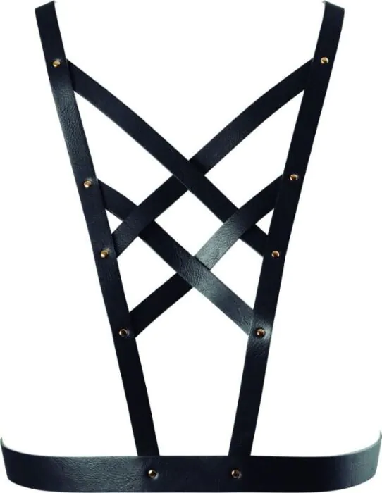 Eleganten in zapeljiv pas dodatno poudari vaš dekolte in doda kanček bondage estetike k vašemu videzu. Izdelan je iz recikliranih poliuretanskih trakov z vegansko PETA certifikacijo, kar pomeni, da ne vključuje usnja živali. Prilagodljivost omogoča, da se pas popolnoma prilega vaši postavi.
