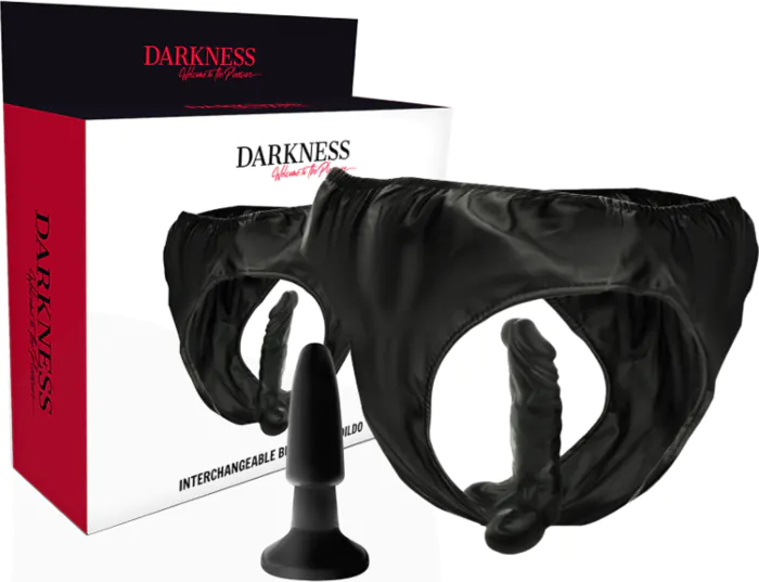 Uživite v igrivem in udobnem igralnem pasu DARKNESS. Z izmenljivima dildom in plugom ponuja raznolikost, ki jo iščete. Idealno za začetnike v BDSM svetu.