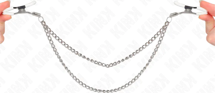 Natančna stimulacija bradavičk in vizualna privlačnost z debelimi verigami. Pinze za bradavičke KINK, izdelane iz kovine in trdne plastike, ponujajo varnost in vzdržljivost za dolgotrajno uporabo.