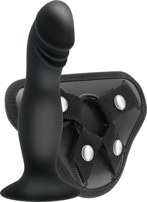 Uživanje v dvojnem stimuliranju s prilagodljivim arnesom in pol-realističnim dildom. Trakovi iz najlona omogočajo popolno prileganje, medtem ko močna sesalna osnova dilda omogoča uporabo brez arnesa. Dodajte mini vibrator za dodatno stimulacijo (ni priložen) in razkrijte povsem nove plati vašihaniji.