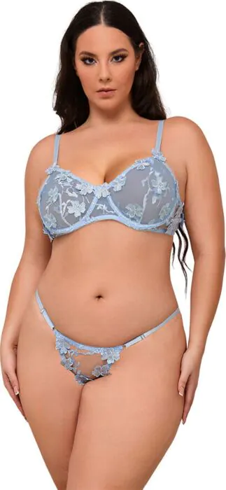 Občutek lahkosti in sofisticiranosti s kompletom spodnjega perila SUBBLIME, ki združuje prosojno mrežo z nežnimi cvetličnimi vezeninami. Narejen iz mešanice 95% poliestra in 5% spandex/elastana, se udobno prilega silhueti in poudari vsako obliko. Modrček ima polprosojne skodelice in nastavljive naramnice, medtem ko hlačke dopolnjuje ljubek dizajn, ki poudarja ženskost.