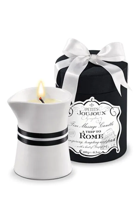 Uživajte v zapeljivem masažu z aromatično svečo A Trip to Rome. Ideална za intimne trenutke, njen toplota in dišava bosta obogatila vaše doživetje.