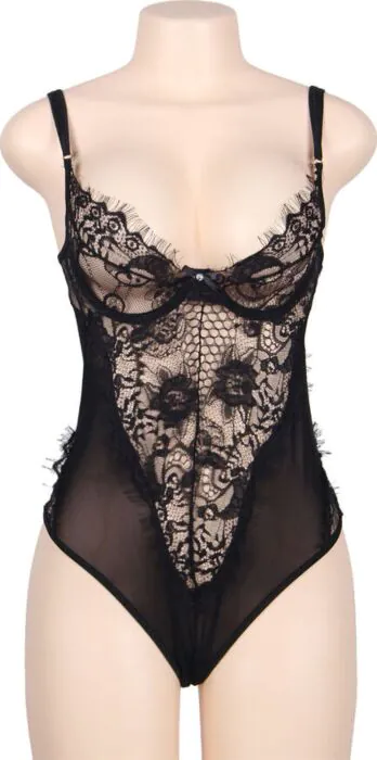 Vas privlači nežna in hkrati zapeljiva temu obdobju? Teddy Subblime Queen Plus z resicami natančno zadene to ravnotežje, saj združuje prosojnice in cvetlični vezenje, kar omogoča privlačnost brez togosti. Ta kos perila je narejen iz čipke, kar ga naredi udobnega za nošenje in omogoča dihajoč občutek.