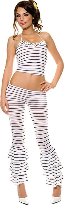 Komplet, ki doda drznost tvojemu videzu. Top in piratske hlače Music Legs so primerne za tiste, ki iščejo sproščen in izviren stil. Njihov črtast dizajn doda značaj tvojemu videzu, priporočljivo za noč zabave ali poseben dogodek.