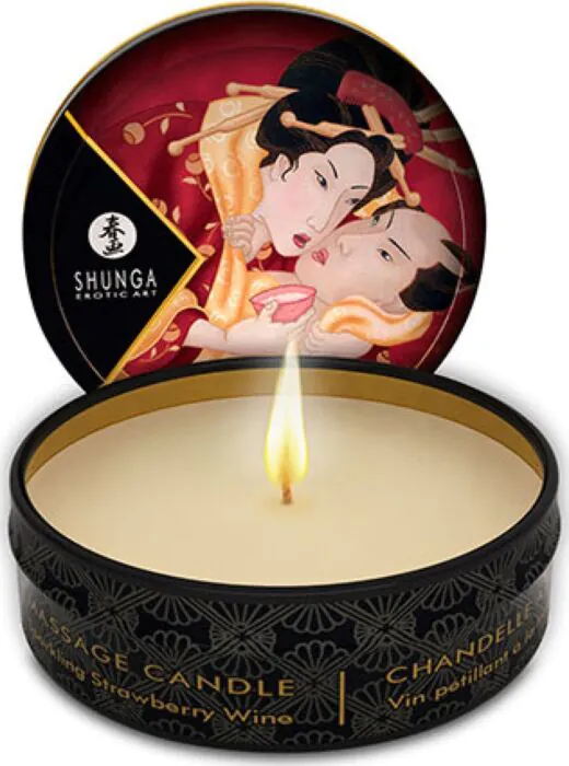 Vela za masažo Shunga Mini Caress z aromo jagod in cava