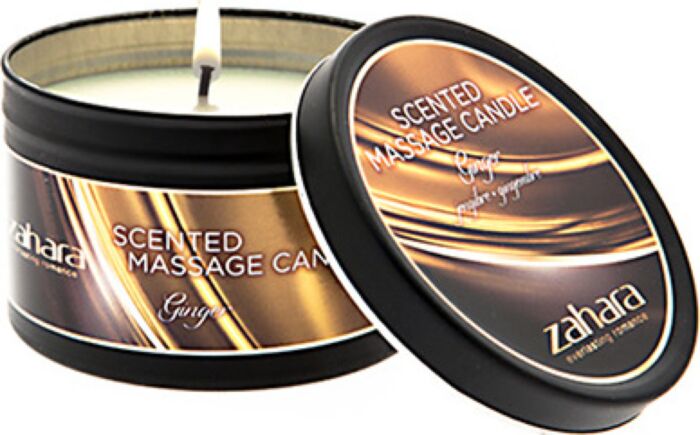 Užitek pri masaži z naravno sojino svečo Zahara Gengibre, ki se spreminja v topel masažni olje. Na voljo za tiste, ki iščejo senzualno in hranljivo izkušnjo.