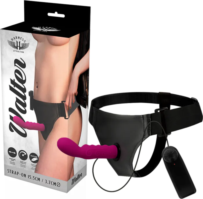 Experience powerful G-Spot stimulation with the Harness Attraction Walter vibrating harness. Designed for versatile use, it features a comfortable fit and a powerful vibrator for enhanced pleasure.