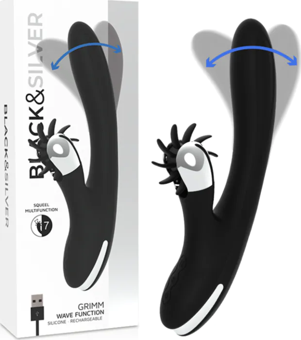 Vibrator BLACK&SILVER GRIMM WAVE FUNCTION z valovitimi vibracijami