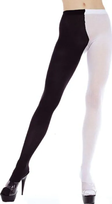 Smooth, opaque tights from Music Legs with one leg in black and the other in white — a clear fashion statement for those who favour bold, asymmetric styling. Cut in XXL for fuller coverage, these plain, non-patterned pantyhose suit anyone seeking a statement accessory that still reads as classic under skirts and dresses.